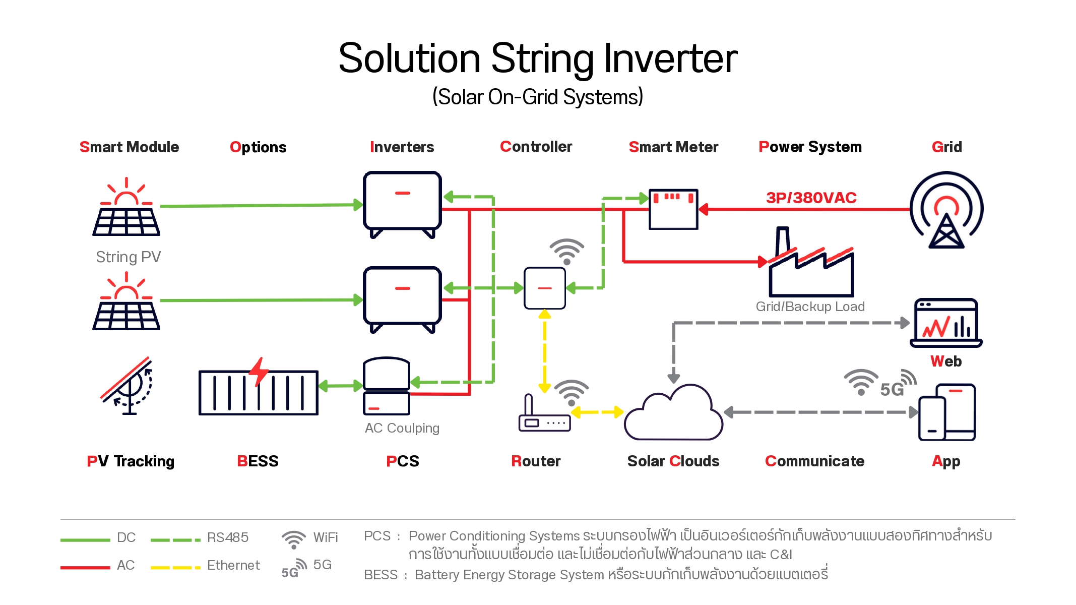 พลังงานแสงอาทิตย์อัจฉริยะ และ BESS เพื่อธุรกิจผู้ผลิตไฟฟ้า (String Inverter)